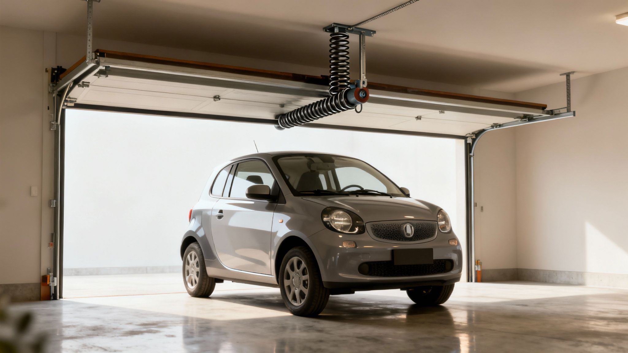 Pour bien comprendre leur rôle, imaginez que vous deviez soulever le poids d'un scooter chaque fois que vous voulez sortir votre voiture. C'est exactement la force que les ressorts fournissent à votre place, de manière quasi invisible. Ils sont le vrai muscle de votre installation, bien plus que le moteur électrique.